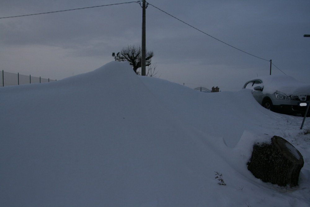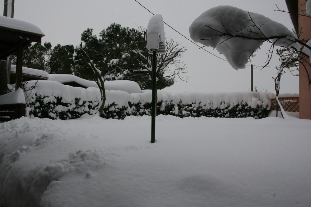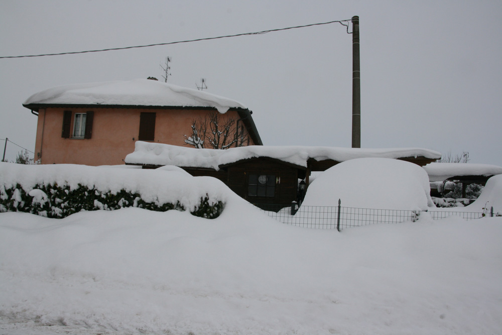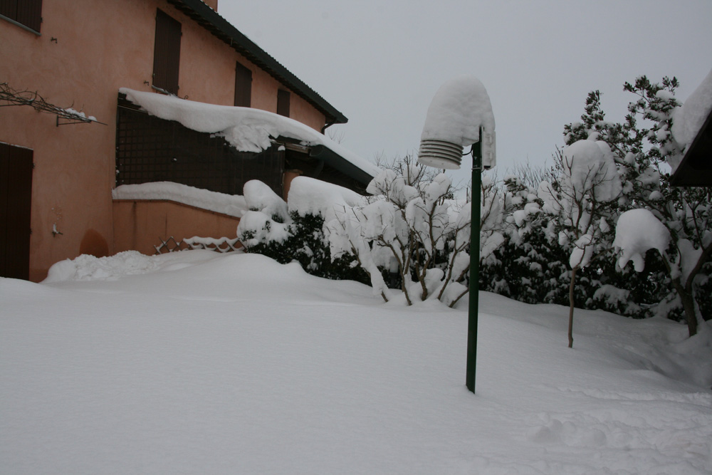 Accumulo damezzanotte di circa 25 cm. Accumulo totale: 95 cm. Ecco le foto. Il tetto di casa mia stracarico di neve. ![]() Dopo 6 giorni si scoprono le colline... ![]() Sono sommerso di neve... ![]() Sono sommerso di neve... ![]() Cumuli di neve giganti a casa... ![]() Cumuli di neve giganti a casa... ![]() Nel giardino ho scavato trincee per arrivare alla porta... ![]() Il sensore secondario di temperatura in giardino. ![]() Il sensore secondario di temperatura in giardino. ![]() Giochi di neve. ![]() Le auto dei vicini. ![]() Accumuli eolici. ![]() Il giardino. ![]() Non si passa! ![]() Il giardino. ![]() San Biagio (RA). ![]() Accumuli da paura! ![]() Accumuli da paura! ![]() Dalla finestra. ![]() Dalla finestra. ![]() Dalla finestra.